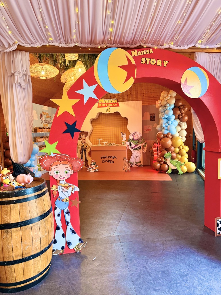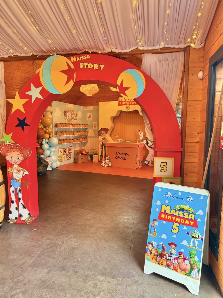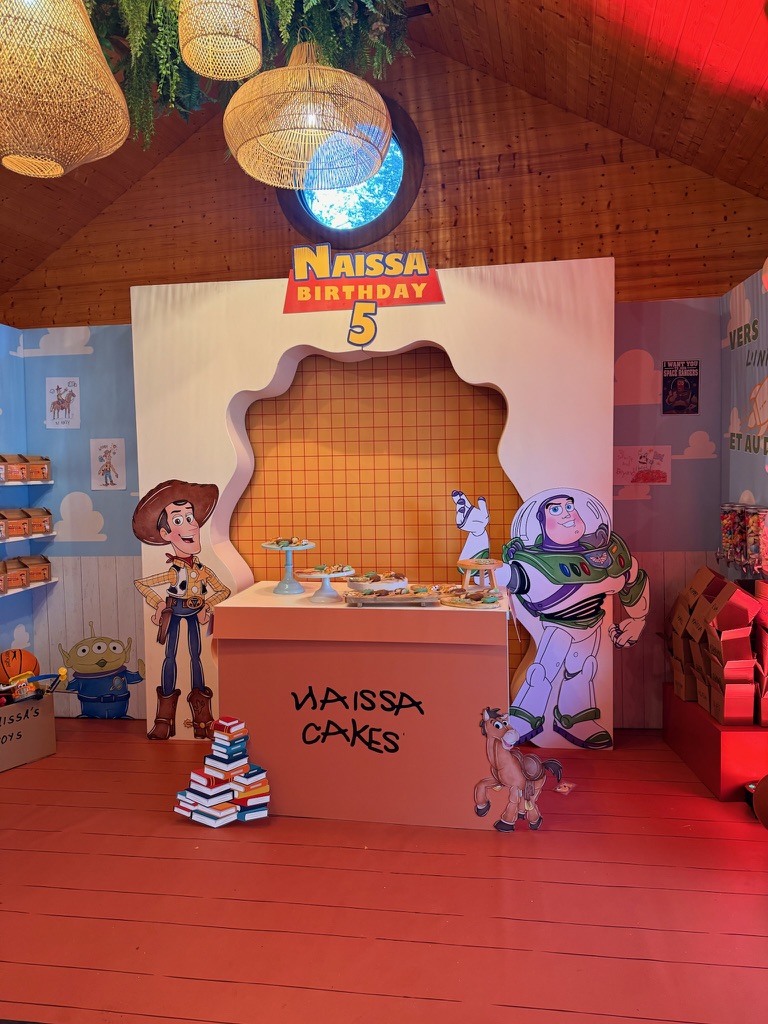 Pour célébrer les 5 ans de Naissa, nous avons imaginé une décoration anniversaire Toy Story sur mesure, immersive et colorée, parfaite pour une fête anniversaire enfant 5 ans inoubliable. Cette scénographie anniversaire thème dessin animé plonge les invités dans l’univers iconique de Toy Story avec une mise en scène ludique et spectaculaire.